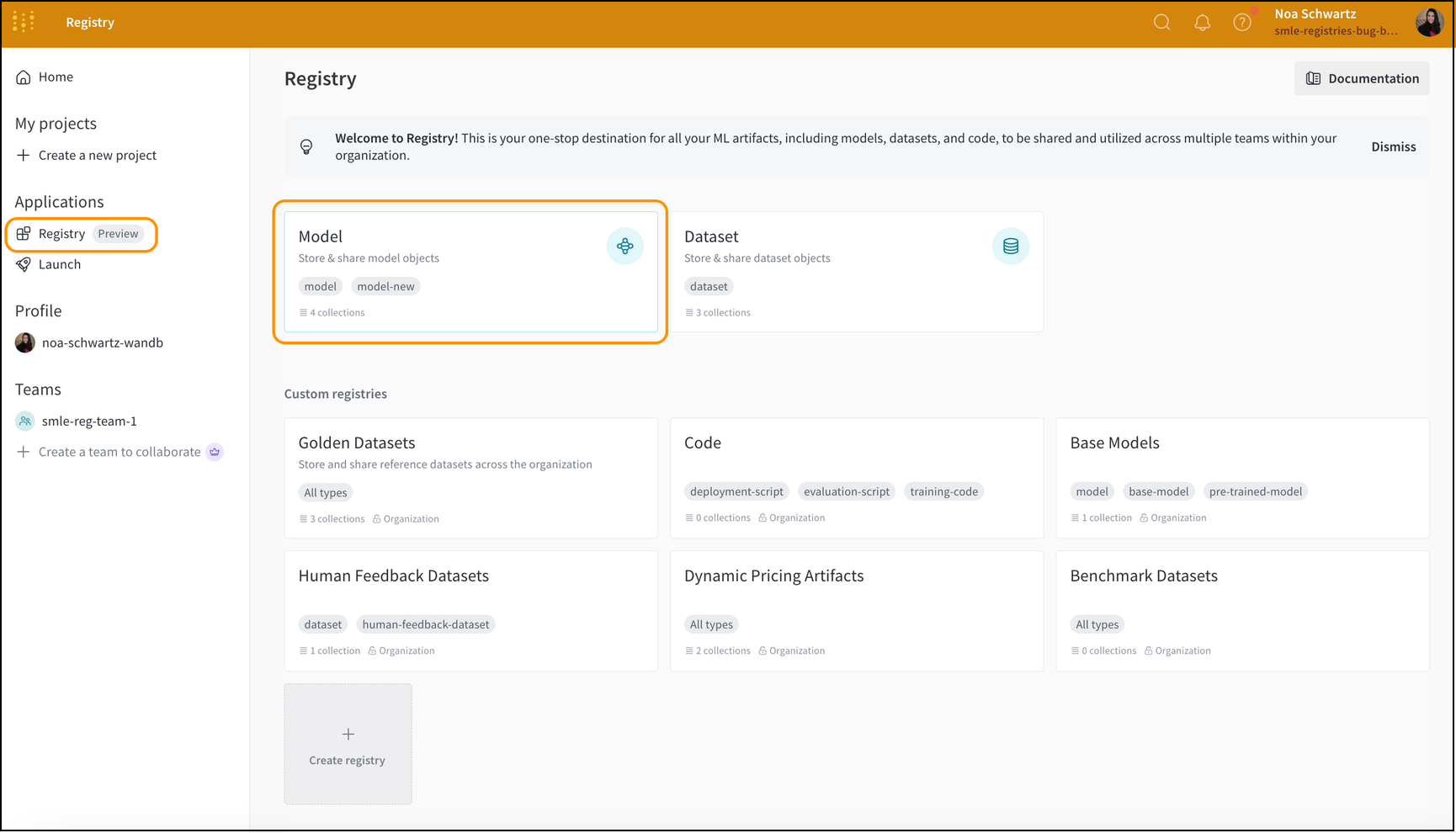 W&B レジストリは、モデル、データセット、およびその他のアーティファクトを管理するための、より強力で柔軟な環境を提供するよう設計された新機能と強化を導入します。